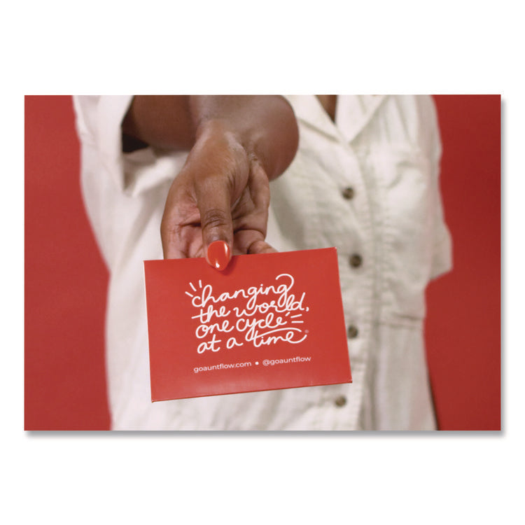 Aunt Flow®'s unique pad cartridges make re-loading Aunt Flow® Dispensers easy for janitors. Each regular day pad with wings is comfortable and made with organic cotton top-sheet. Absorbency: Regular; Quantity: 500/Carton.