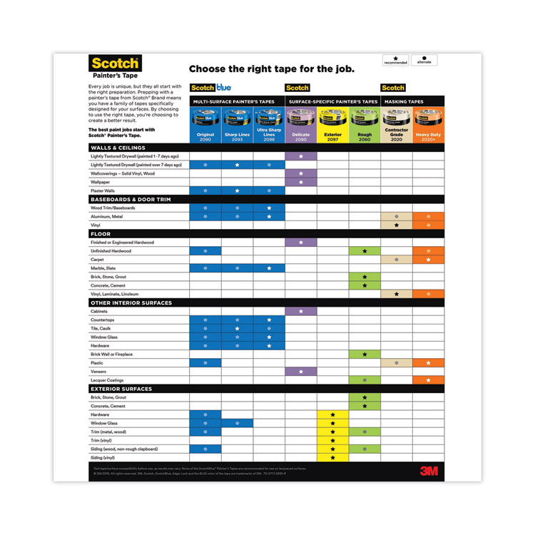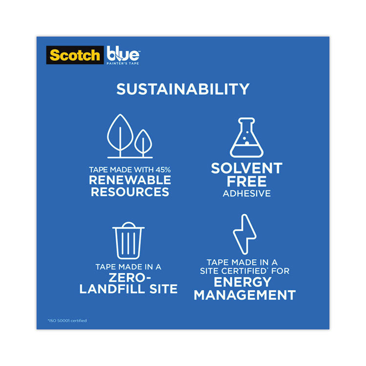 ScotchBlue Original Painter's Tape is the tape that DIY painter's and pros have loved for more than 30 years. Whether you're protecting your wood trim, painted walls, tile floor, or glass windows, this versatile multi-surface tape can stay on surfaces for up to 14 days and then be removed easily without leaving any sticky residue behind. Help protect your surfaces while bringing your creative vision to life with the help of ScotchBlue Original Painter's Tape. For great paint results make sure the surface is clean, dry and dust-free so that the tape sticks properly. Next, apply the tape onto the surface while pressing down firmly as you go. And lastly, let the tape set for about 30 to 60 minutes before painting. Wait until the paint is dry to the touch before removing the tape. Lift the tape up by slowly pulling it back on itself, then removing at a 45-degree angle. Value PackStock up and save! Core Size: 3"; Dispenser Included: No; Adhesive Material: Acrylic; Backing Material: Crepe Paper.