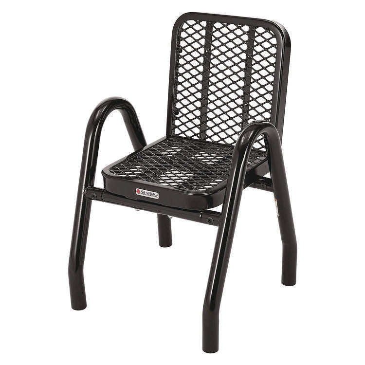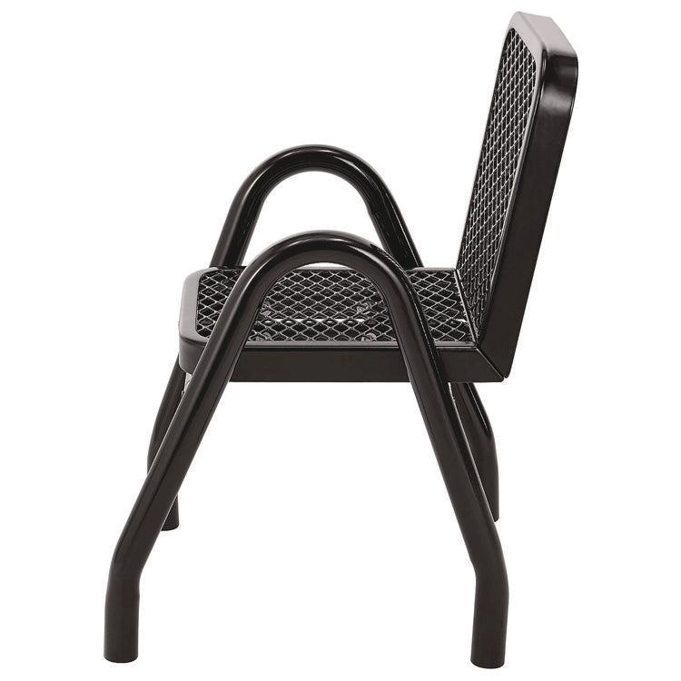 Provide unique style and comfortable outdoor dining for guests with this outdoor dining set. Ideal for restaurants, bars, outdoor food courts, public parks and streateries! Thermoplastic coating resists fading, mold and vandalism. High-gloss surface is designed to stay cool under the hot sun. 36" tabletop includes an opening to accept an umbrella with a pole of up to 1.5" diameter. The sturdy pedestal base features a black textured powder coat finish that resists corrosion. This table and chair set is easy to clean and will ensure maintenance-free durability through years of high-traffic usage. Easy assembly. Top Color: Black; Color Family: Black; Base Color: Black; Top Shape: Round.