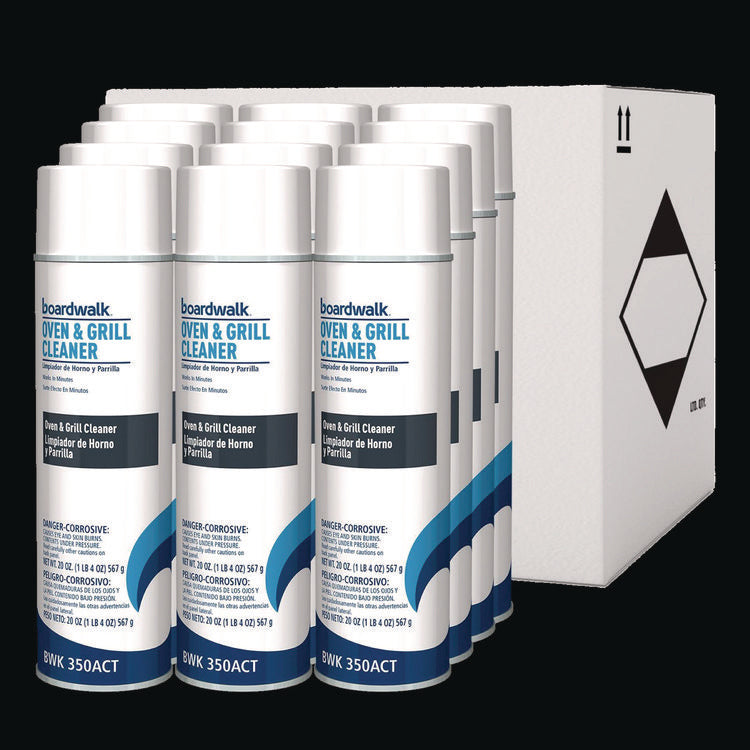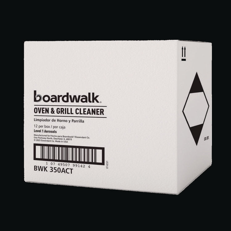 Boardwalk Oven and Grill Cleaner tackles tough, baked-on grease left behind with less manual scrubbing. Simply spray the surface and wipe clean. The cleaner can also be used on pots, pans, cooking utensils, and other stainless steel surfaces. Convenient aerosol spray makes application at any angle easy. Removes carbon, debris, grease, grime, oil-based soil, organic matter, smoke, and film. Application: Degreaser/Cleaner; Applicable Material: Ceramics; Enamel; Metal; Dirt Types: Carbon; Food Debris; Grease; Grime; Oil-Based Soil; Organic Matter; Smoke Film; Scent: Unscented.