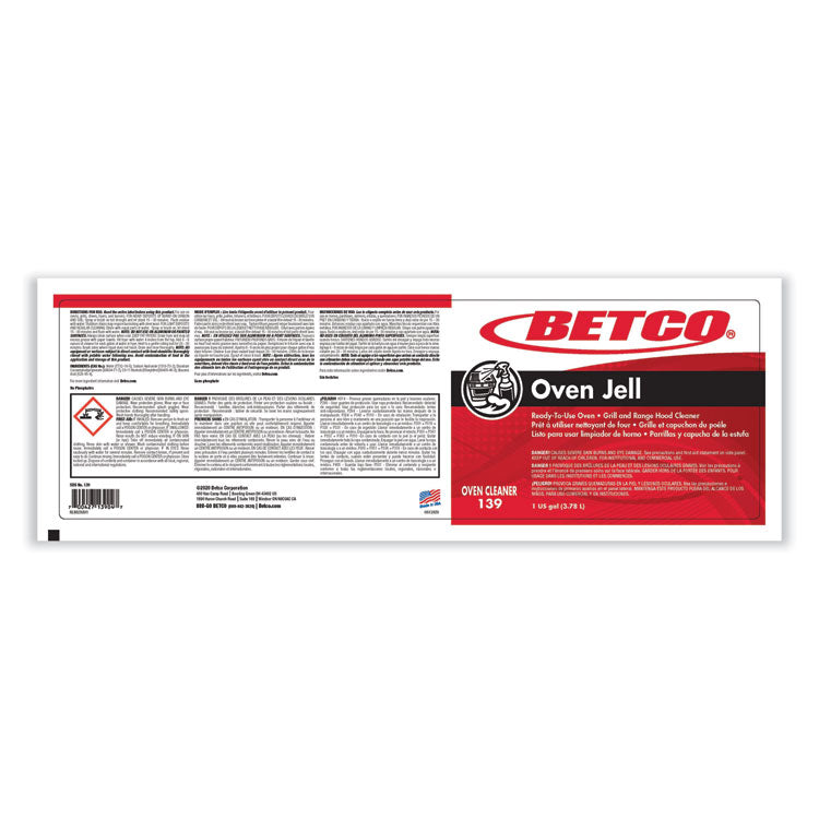 This premium fast-acting oven and grill cleaner is formulated to cling to vertical surfaces providing long contact time for easier cleaning. More effective than foaming products this formulation quickly dissolves even the toughest soils. Oven Jell breaks the chemical bond between the soil and oven surface releasing baked on deposits. The result is fast and easy removal of baked on food deposits. Application: Degreaser/Cleaner; Applicable Material: Grills; Ovens; Chemical Compound: Sodium Hydroxide; Dirt Types: Soils.