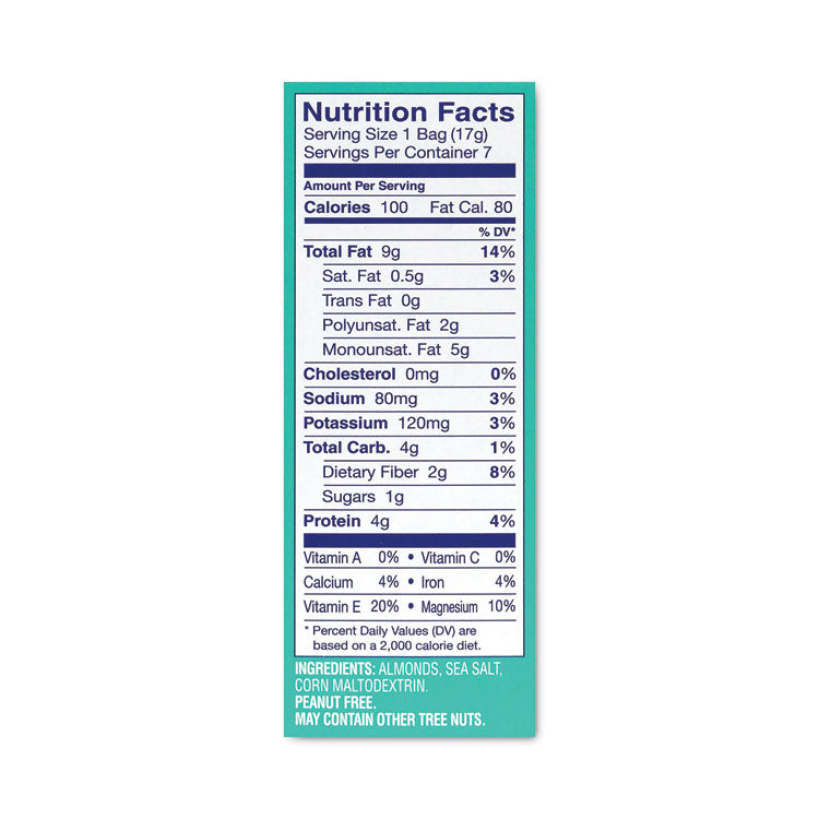 Oven Roasted Sea Salt Almonds, 0.6 oz Bag, 7 Bags/Box, 6 Box/Carton