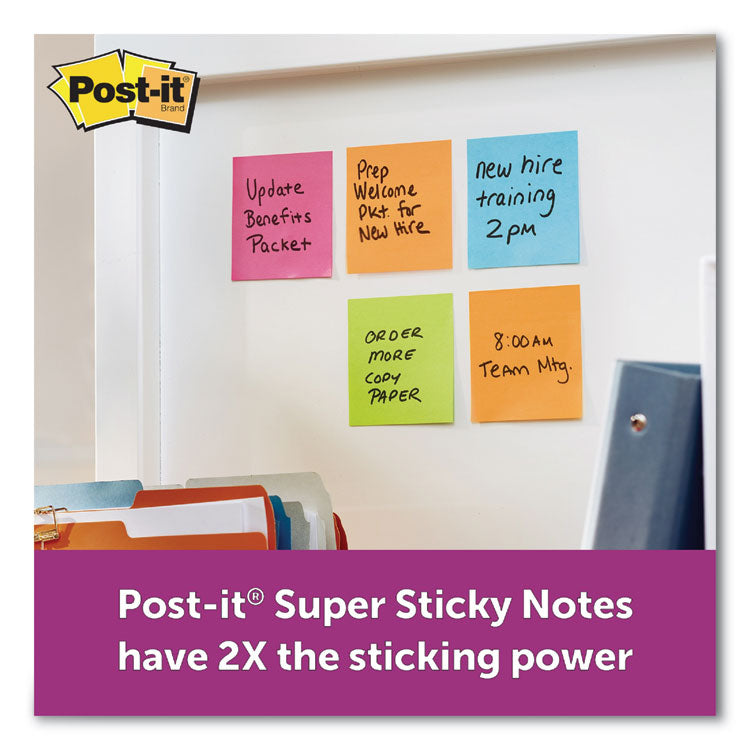 Experience the power of 2X stickiness and get the creative juices flowing with the bright, playfully dynamic colors of the Energy Boost Collection. Super Sticky Notes stick to practically everything, everywhere, and these vibrant, spirited colors can brighten your mood and your messages! Revolutionary technology ensures your notes will stick securely to most surfaces yet remove cleanly. Versatile and essential, they're the perfect solution for lists, reminders, color-coding, labeling, brainstorming, storyboarding and even mural art. As they adhere firmly to walls, windows, doors, worksurfaces, mirrors and more, you can stick and restick them wherever they're most likely to be noticed. To enhance your note-taking experience, download the free Post-it® App to your smartphone or tablet and instantly capture, save and share your important notes. Self-Stick Pad Type: Super-Sticky; Shape: Square; Color(s): Energy Boost Collection; Color Family: Multicolor.