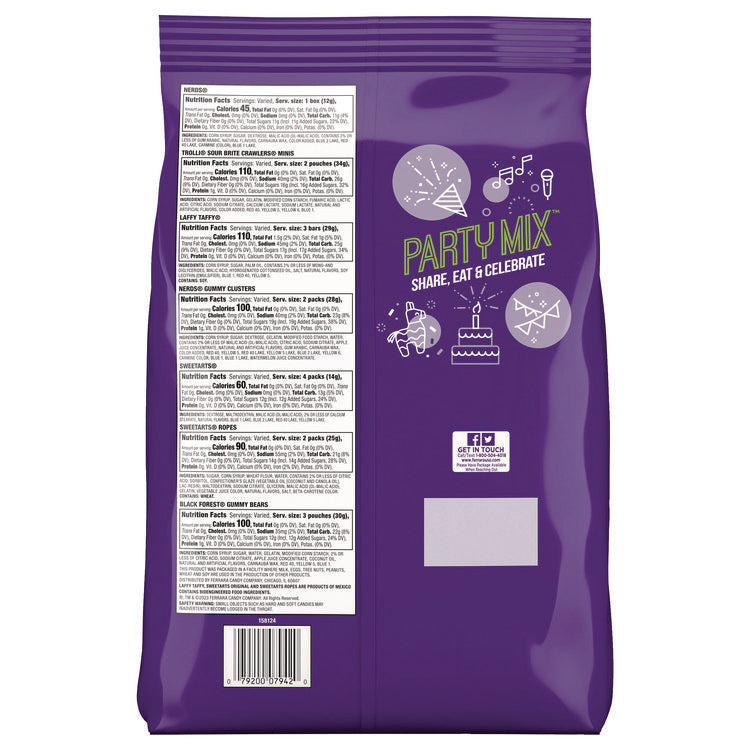 Dive into a tantalizing world of flavor with the Ferrara® Party Mix. A delicious mix of sweet and sour candies play a starring role in this delightful candy assortment. Though designed for parties, holidays and special occasions, these bags are also ideal for the home or officekeep your candy dishes full all year long! Perfect for candy enthusiasts and those who appreciate a whimsical treat, Party Mix bags contain a wide variety of both classic and new sweet and sour, fruity treats from Ferrara®. Convenient stand-up bag. 120 Pieces. Food Type: Candy; Flavor: Assorted; Capacity (Weight): 2.5 lb; Sugar Free: No.
