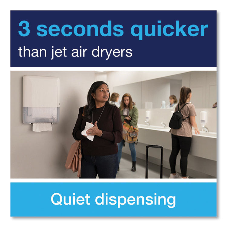 Tork® PeakServe® Continuous® Hand Towel Dispenser is the latest innovation designed for high-traffic washrooms where staff needs to maximize cleaning time and maintain a good flow of guests. Compatible with Tork PeakServe Continuous hand towels, the system offers very high capacity, which can be dispensed quickly and without interruption to keep the flow. The compressed refills are fast to fill, can be topped up at any time and are easy to store and transport, enabling staff to focus on cleaning, not refilling. Towels served in three seconds for washroom flow with no hold ups for guests. Compression means more hand towels, preventing unexpected run outs as compared to traditional towel systems. Top up with hand towels when it suits you. More flexibility means more time to clean. Taking a towel is always smooth and easy with our patented Continuous hand towel system. EasyCube® compatible. Towels Dispensers Type: Continuous® Towel Dispenser; Dispenser Capacity (text): 1,230 Towels; Material(s): Plastic; Color(s): White.