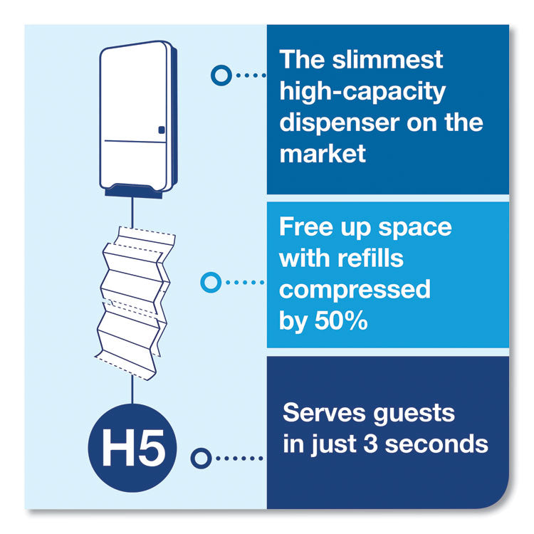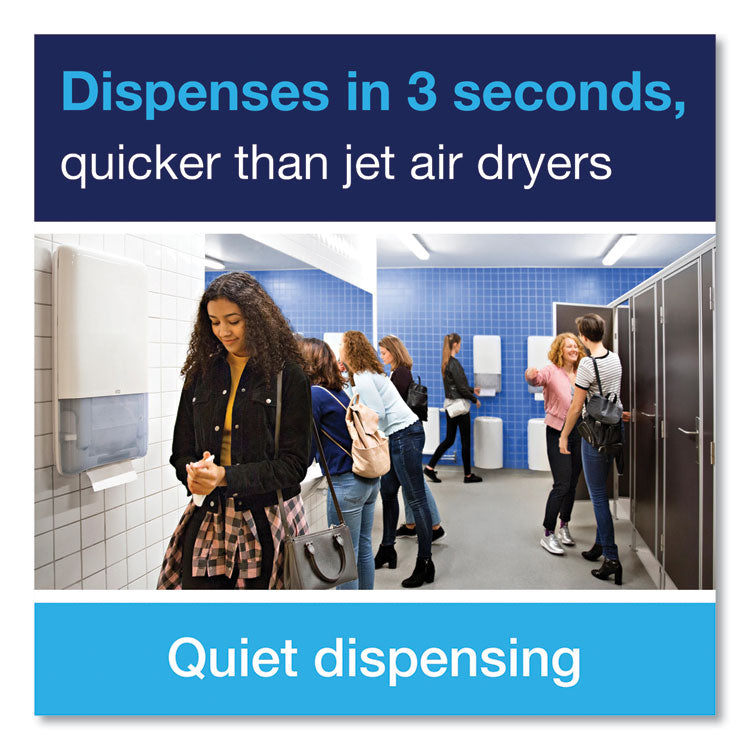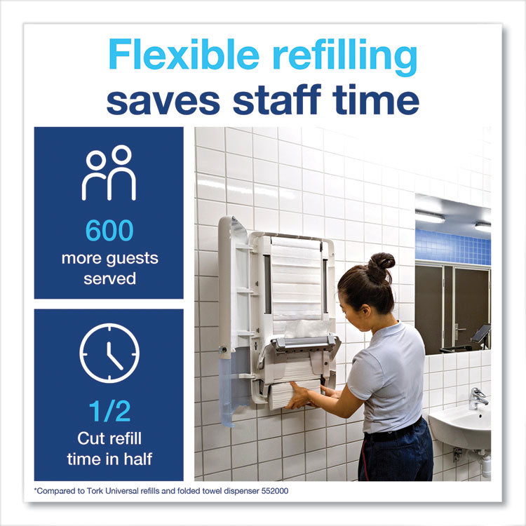 Tork® PeakServe® Continuous® Hand Towel Dispenser is the latest innovation designed for high-traffic washrooms where staff needs to maximize cleaning time and maintain a good flow of guests. Compatible with Tork PeakServe Continuous hand towels, the system offers very high capacity, which can be dispensed quickly and without interruption to keep the flow. The compressed refills are fast to fill, can be topped up at any time and are easy to store and transport, enabling staff to focus on cleaning, not refilling. Towels served in three seconds for washroom flow with no hold ups for guests. Compression means more hand towels, preventing unexpected run outs as compared to traditional towel systems. Top up with hand towels when it suits you. More flexibility means more time to clean. Taking a towel is always smooth and easy with our patented Continuous hand towel system. EasyCube® compatible. Towels Dispensers Type: Continuous® Towel Dispenser; Dispenser Capacity (text): 2,100 Towels; Material(s): Plastic; Color(s): White.