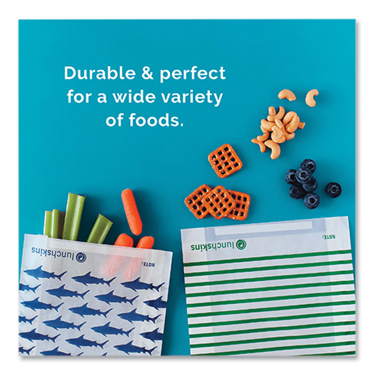Peel and Seal Sandwich Bag with Closure Strip, 6.3" x 2" x 7.9", Blue Sharks/White, 50/Box