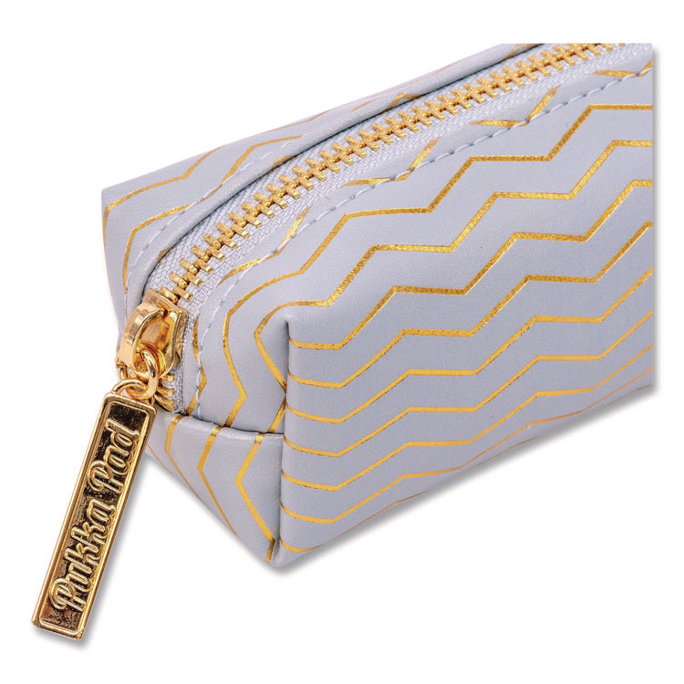 Pencil cases are an everyday essential for organizing pens and pencils. The compact design makes it easy to chuck into college or work bags to keep your pens and pencils organized. This pencil case is an awesome size for a range of pens and pencils. The slim pencil case is lightweight yet durable and is great for school or professional settings. The pencil case is made from faux leather and includes a luxurious gold zip that is easy to open and close. People expect more from Pukka Pad products and that's what they get. Number of Compartments: 1; Color(s): Blue; Color Family: Blue; Material(s): Metal; Polyurethane Leather.
