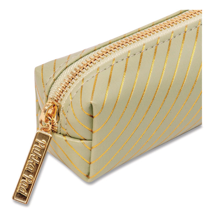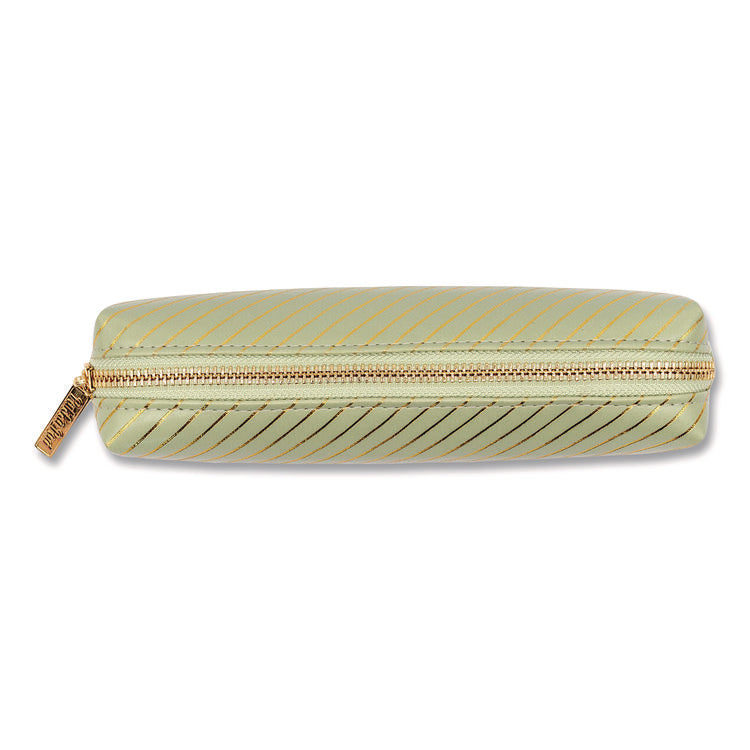 Pencil cases are an everyday essential for organizing pens and pencils. The compact design makes it easy to chuck into college or work bags to keep your pens and pencils organized. This pencil case is an awesome size for a range of pens and pencils. The slim pencil case is lightweight yet durable and is great for school or professional settings. The pencil case is made from faux leather and includes a luxurious gold zip that is easy to open and close. People expect more from Pukka Pad products and that's what they get. Number of Compartments: 1; Color(s): Green; Color Family: Green; Material(s): Metal; Polyurethane Leather.
