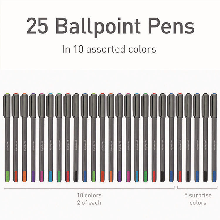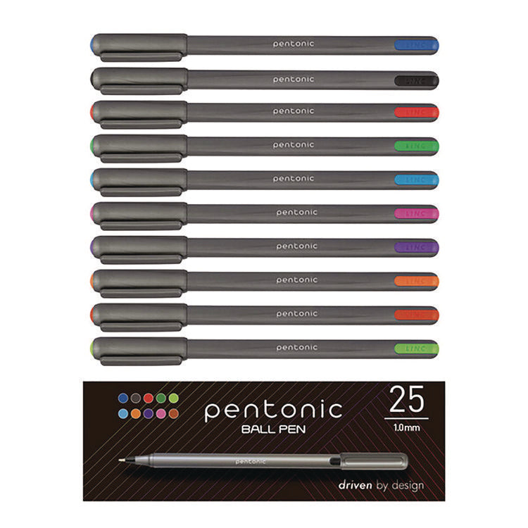 PENTONIC Ballpoint Pen, Stick, Medium 1 mm, Assorted Ink Colors, Charcoal Gray Barrel, 25/Pack