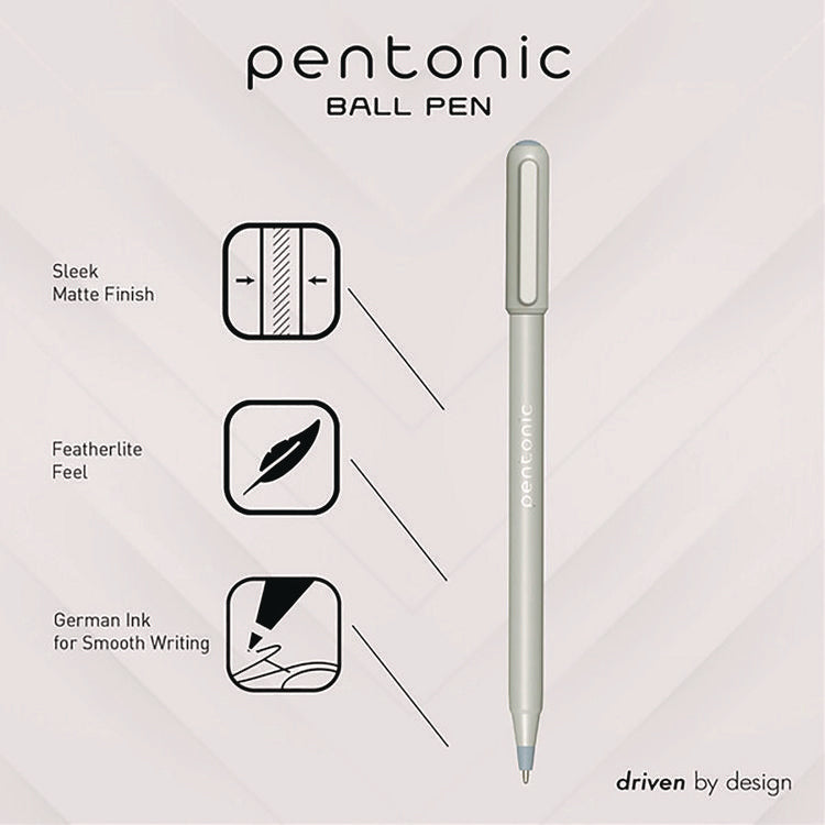 Each PENTONIC featherweight pen has a frosted finish for a comfortable grip and smooth, effortless writing and journaling. The nickel silver pen tip is 0.7 mm fine point for thin, precise lines. The low viscosity ink allows the rolling ball to glide across all kinds of paper surfaces without smearing. You get a consistent flow of ink from the very first use to the very last. The pen cap also helps to maintain the lifespan of your ballpoint pens! Pen Sub-Brand & Product Family: PENTONIC; Pen Type: Gel Pen; Pen Style: Stick; Pen Tip Type: Conical.
