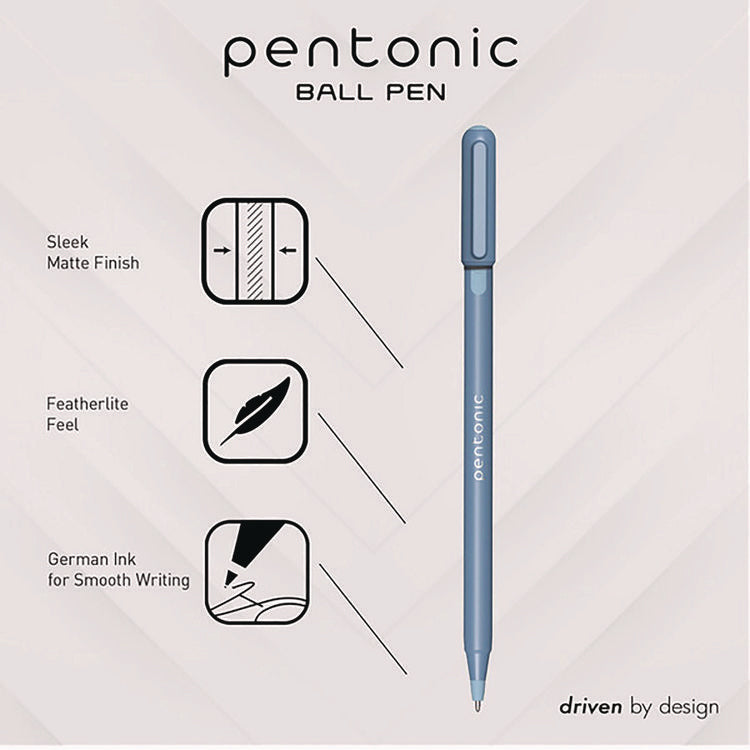 Each PENTONIC featherweight pen has a frosted finish for a comfortable grip and smooth, effortless writing and journaling. The nickel silver pen tip is 0.7 mm fine point for thin, precise lines. The low viscosity ink allows the rolling ball to glide across all kinds of paper surfaces without smearing. You get a consistent flow of ink from the very first use to the very last. The pen cap also helps to maintain the lifespan of your ballpoint pens! Pen Sub-Brand & Product Family: PENTONIC; Pen Type: Gel Pen; Pen Style: Stick; Pen Tip Type: Conical.