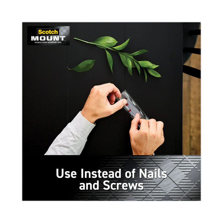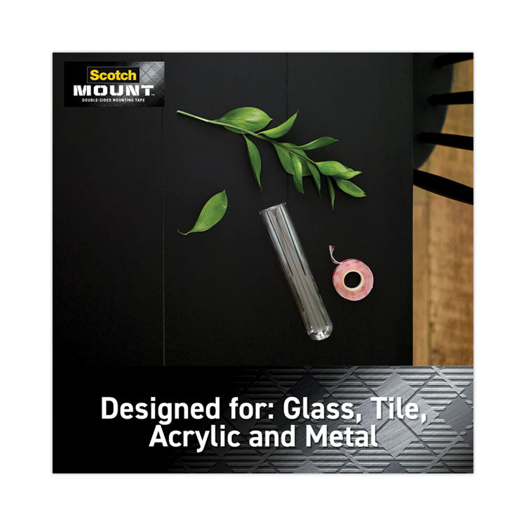 Virtually clear, this double-sided permanent tape is perfect for mounting glass, tiles and artwork. Its strong bond holds up to 15 pounds, without the hassle of nails or a hammer. Holds: Up to 15 lbs; Permanent/Removable/Repositionable: Permanent; Mounting Application: Double-Sided Adhesive; Width: 1".