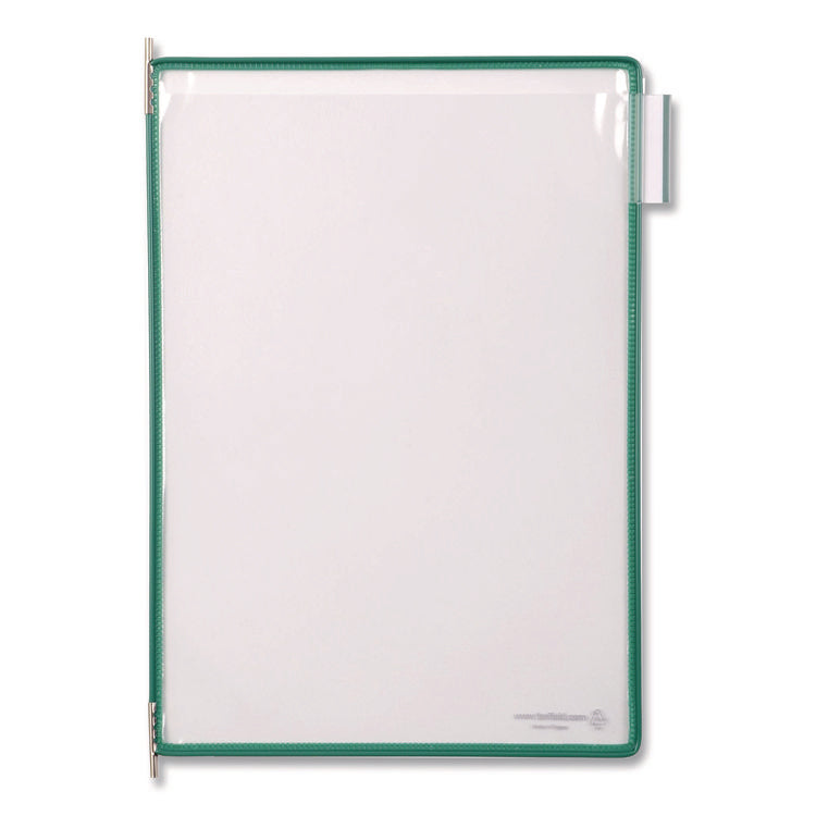 Streamline your workspace with djois® by Tarifold Pivoting Pockets, the ultimate solution for displaying and accessing your documents efficiently. Designed for versatility, these letter-size pockets are compatible with wall, desk or rotary systems, adapting seamlessly to your needs. Each pocket pivots smoothly, making it easy to browse, update and organize essential information. Built to last, they offer durability and clarity for heavy daily use in offices, schools or industrial settings. These pockets are perfect for creating accessible reference systems that boost productivity and keep you focused! Number of Compartments: 1; Compartment Capacity: 2 Sheets; Color(s): Green; Border Color(s): Green.