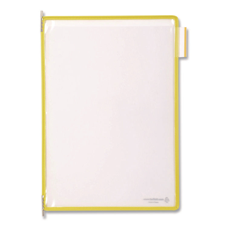 Streamline your workspace with djois® by Tarifold Pivoting Pockets, the ultimate solution for displaying and accessing your documents efficiently. Designed for versatility, these letter-size pockets are compatible with wall, desk or rotary systems, adapting seamlessly to your needs. Each pocket pivots smoothly, making it easy to browse, update and organize essential information. Built to last, they offer durability and clarity for heavy daily use in offices, schools or industrial settings. These pockets are perfect for creating accessible reference systems that boost productivity and keep you focused! Number of Compartments: 1; Compartment Capacity: 2 Sheets; Color(s): Yellow; Border Color(s): Yellow.