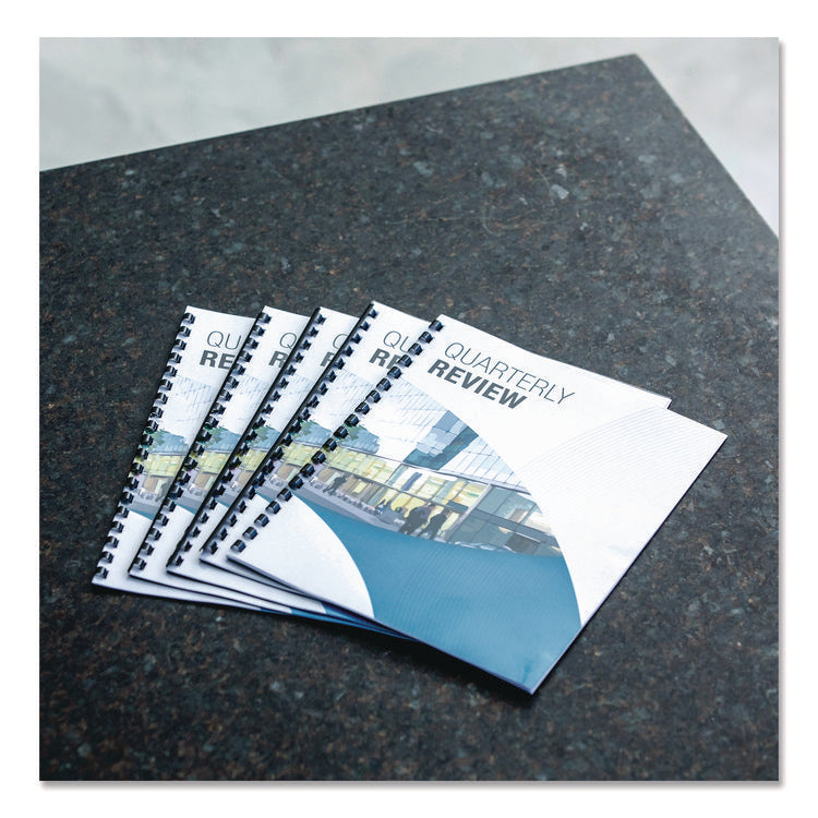 Get a professional edge! Plastic comb binding creates easy-to-handle documents with a high-quality, custom look. For use with Fellowes® or any standard 19-ring comb-binding system. Sheet Capacity: 200; Spine Diameter: 1"; Number of Rings: 19; Color(s): Black.