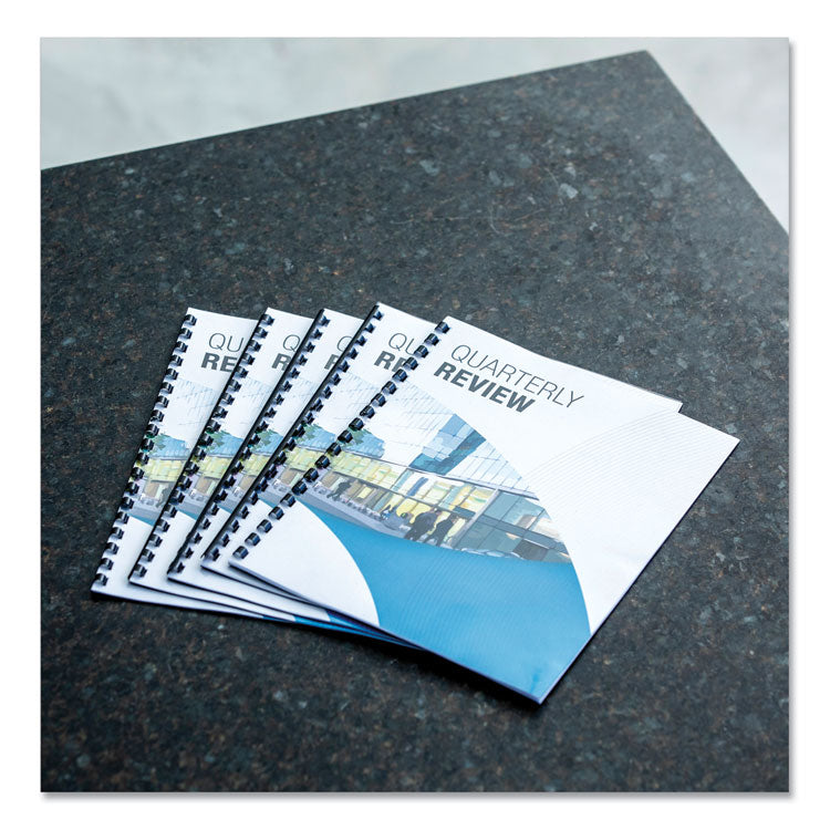 Get a professional edge! Plastic comb binding creates easy-to-handle documents with a high-quality, custom look. For use with Fellowes® or any standard 19-ring comb-binding system. Sheet Capacity: 40; Spine Diameter: 5/16"; Number of Rings: 19; Color(s): Black.