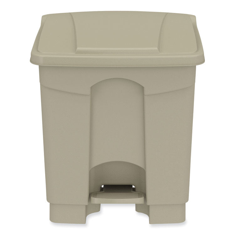 Plastic Step-On Receptacle, 8 gal, Metal, Tan