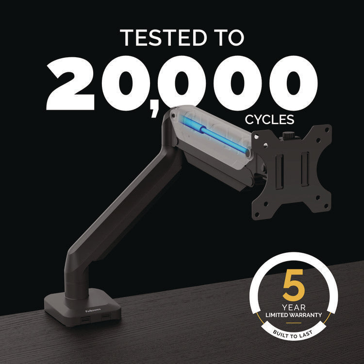 Platinum Series Single Monitor Arm, For 30" Monitors, 360 Deg Rotation, 180 Deg Tilt, 360 Deg Pan, Black, Supports 20 Lb