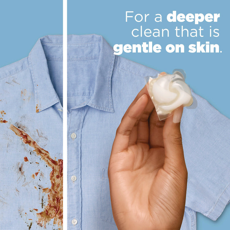Tide is reinventing the way you do laundry! Tide PODS clean, fight stains, and brighten in one. No more pouring, no more spills-just toss one in. It's that easy! Ideal for use in all water temperatures. Designed for standard and HE machines. Free & Gentle—Hypoallergenic, dermatologist tested, free of dyes and perfumes; provides a deeper clean (versus the leading Free detergent) that's gentle on skin. Application: Laundry Detergent; Applicable Material: Fabric; Chemical Compound: MEA C10-16 Alkylbenzenesulfonate; MEA Laureth Sulfate; C10-16 Pareth; Propylene Glycol; Glycerin; MEA Salts Of C12-18 Fatty Acids; Polyethyleneimine Alkoxylated; Tetrasodium Glutamate Diacetate; PEG-136 Polyvinyl Alcohol; MEA-Citrate; Sodium Bisulfite; Hydrogenated Castor Oil; Disodium Distyrylbiphenyl Disulfonate; Zeolite; Subtilisin; Amylase Enzyme; Styrene/Acrylates Copolymer; Denatonium Benzoate; Polyvinyl Alcohol Polymer; Water; Dirt Types: Dirt; Stains.
