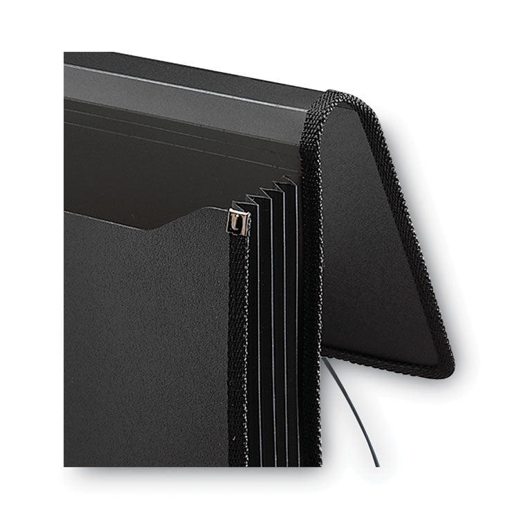 Poly Premium Wallets, 5.25" Expansion, 1 Section, Elastic Cord Closure, Letter Size, Black