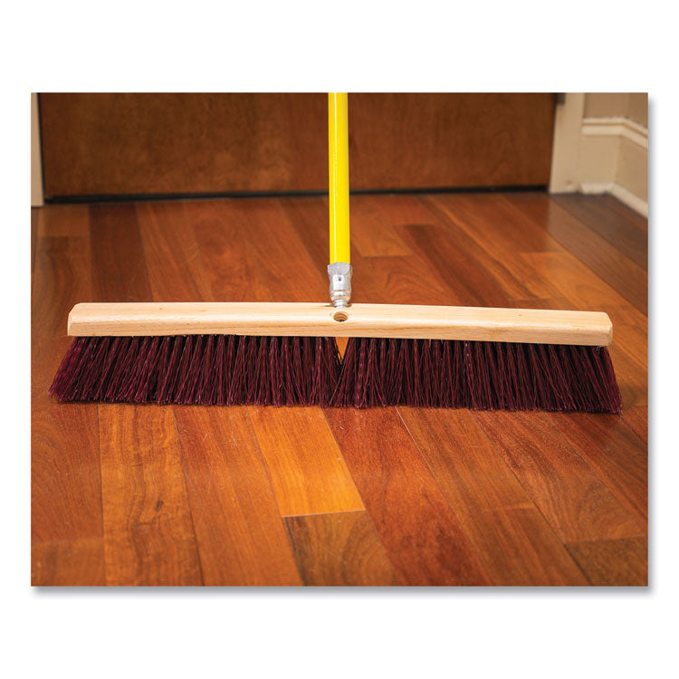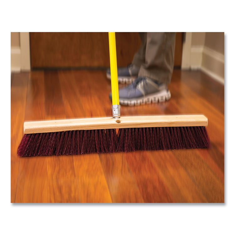 Poly Push Broom Kit, 24" x 60" Metal Handle, Maroon/Yellow