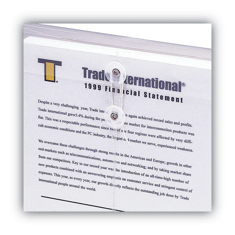 Poly String and Button Interoffice Envelopes, Open-End (Vertical), 9.75 x 11.63, Clear, 5/Pack