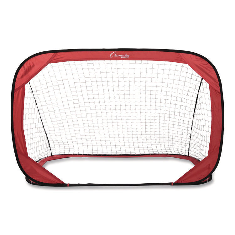 Set up a practice at the field or in your backyard with the Champion Sports Pop-Up Soccer Goals. Featuring a pop-up design, these soccer goals are easy to set up and tear down, so you spend less time setting up the nets and more time playing games. These collapsible soccer nets fold flat for added convenience during transportation and storage, making it ideal for gym classes or taking on the road for practice. It comes as a set of two so you can set up a game on the go. Length: 72"; Width: 48"; Diameter: 1.25"; Material(s): Nylon; Steel.
