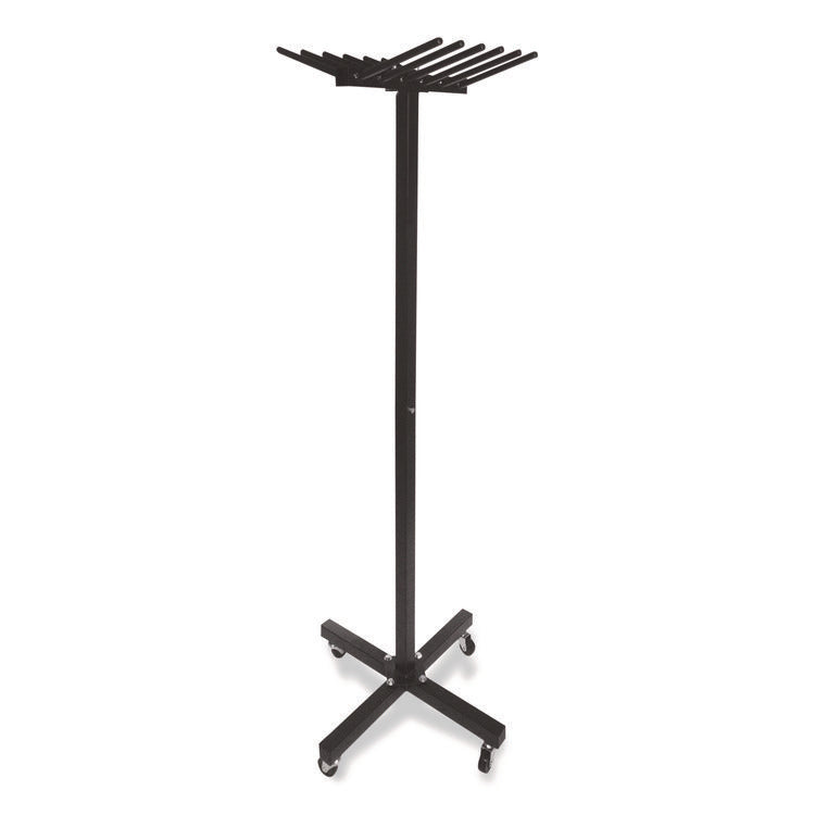 The Champion Sports Portable Jump Rope Cart is a convenient way to transport and store your jump ropes! Simply drape your ropes over any of the twelve 8'' posts. Made of black powder coated steel tubing, this cart has rubber casters for easy movement. Never worry about a tangled mess of jump ropes again! Material(s): Steel; Overall Material Type: Metal; Color(s): Black; Color Family: Black.