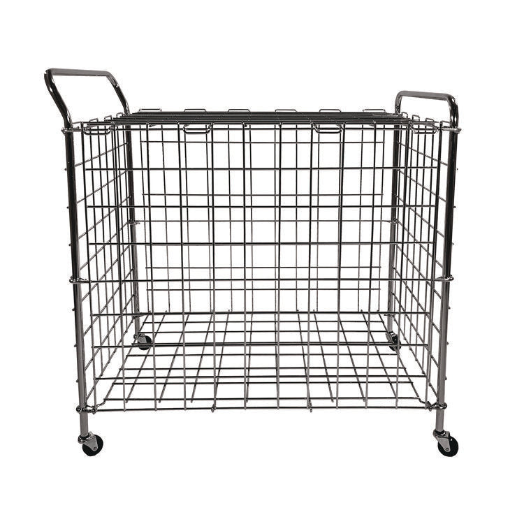 This Champion Sports Portable Ball Locker comes ready for use. It holds a variety of ball sizes and is intended for larger volumes. It features an all-steel construction, chrome finish and four non-marring casters that not only protect the finish of your play surface but also provide for effortless transport of equipment. Just unfold and insert the casters for a convenient mobile storage space. This locker is designed with a lockable hinge cover for added security. Material(s): Steel; Overall Material Type: Metal; Color(s): Chrome; Color Family: Silver.