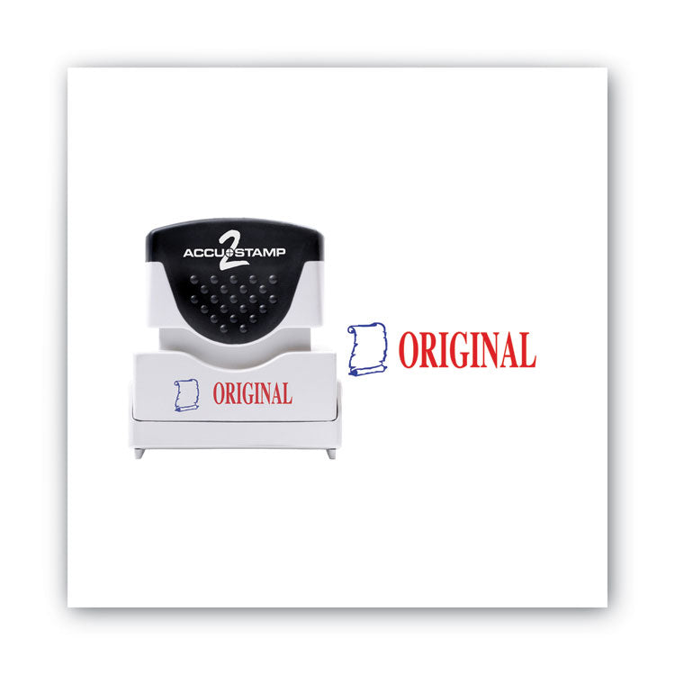 Introducing the ACCU-STAMP2 Pre-Ink Message Stamp, a powerful tool for efficient document marking. With its unique shutter mechanism, this stamp allows for convenient one-handed operation while keeping it free from dust and debris. The soft-touch ergonomic handle ensures a comfortable grip, making stamping effortless. Experience vibrant red and blue impressions measuring 1.63" x 0.5", adding a professional touch to your documents. With thousands of impressions before re-inking, this stamp delivers long-lasting performance. Simply re-ink with ACCU-STAMP Pre-Ink Refill Ink for optimal results. Designed for professionals who value efficiency and precision, the ACCU-STAMP2 Pre-Ink Message Stamp streamlines your workflow, enhances communication, and maintains professionalism in one versatile tool. Stamp Type: Message; Message(s): ORIGINAL; Ink Types: Pre-Inked; Re-Inkable; Impression Width: 1.63".