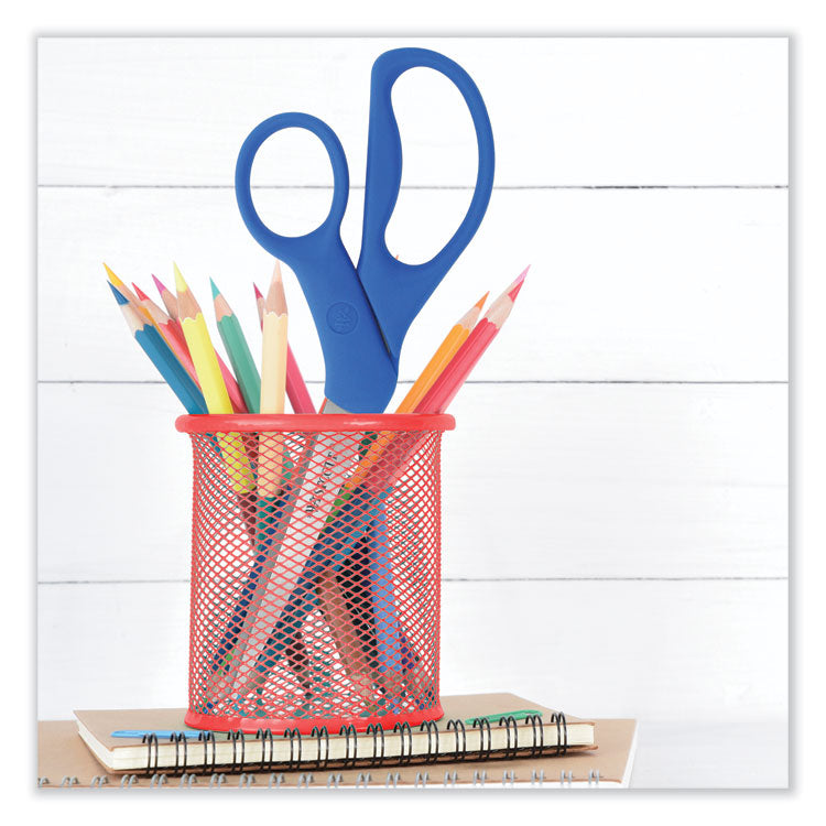 Westcott has provided the world with innovative and well designed products for over a century.. at affordable prices, without sacrificing quality. All-purpose shears with corrosion-resistant, stainless steel blades. The blades are ground on the inside and back edges for smooth, effortless cutting. Insert molded into plastic handles for greater durability. Made for both right and left-handed use. Made for lightweight usage perfect for paper, ribbon and and photos. Cutting Tool Style: General Purpose; Scissor Tip Type: Pointed; Scissors Cut Length: 3.5"; Overall Length: 8".