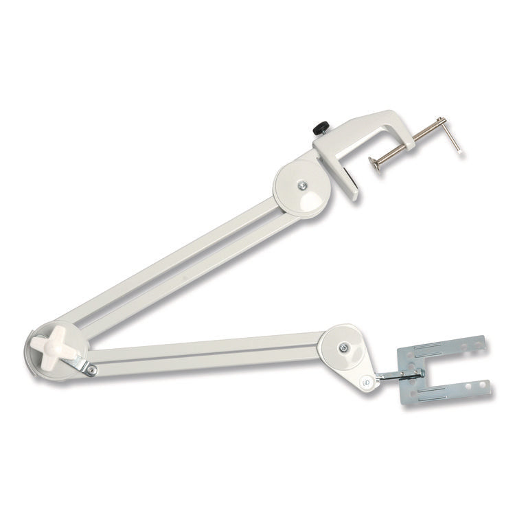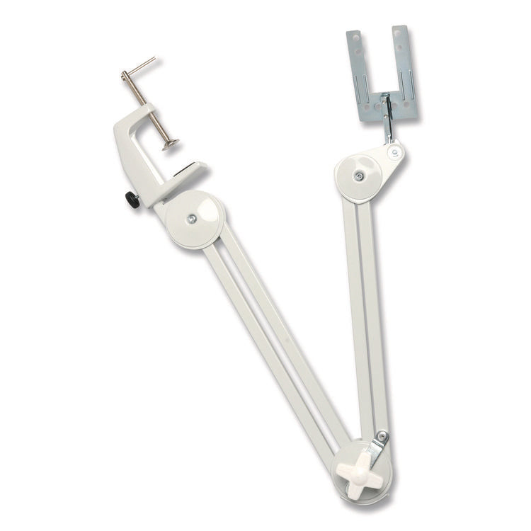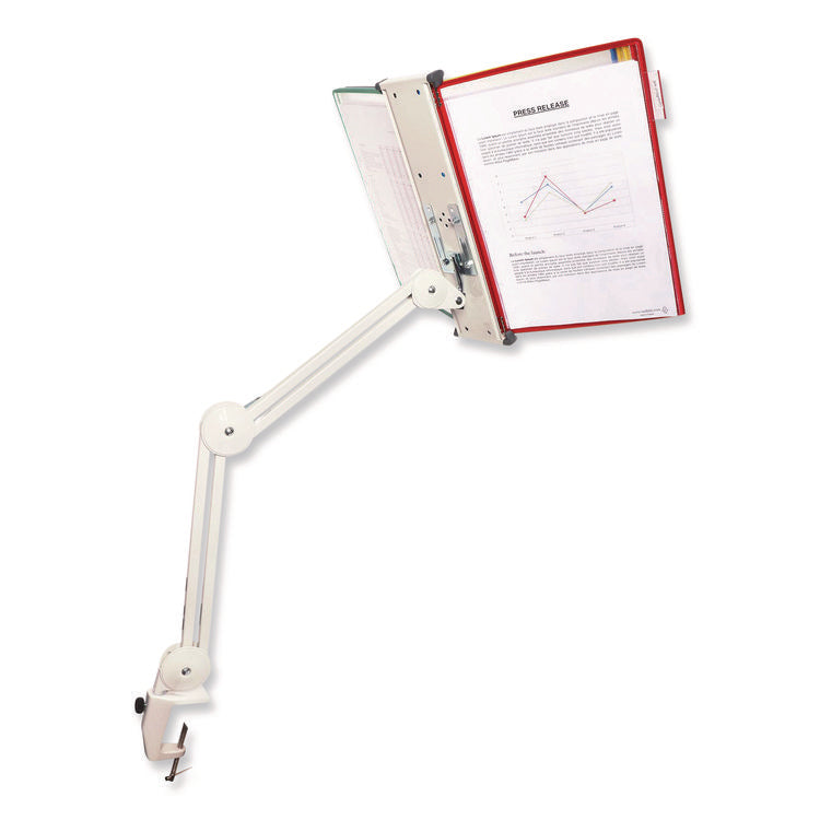 Streamline your workspace and make information accessible with this Desktop Reference System with Mounting Arm. Featuring double-sided, pivoting display pockets, this versatile system is perfect for organizing and displaying important documents in a clutter-free way. The pockets come in assorted colors, allowing for easy categorization and quick access to letter-sized materials. Designed to enhance efficiency and organization, the Swing Arm is an ideal solution for offices, workshops, or any setting where staying organized is essential. Rack Style: Desktop; Width: 12"; Depth: 15"; Height: 10".