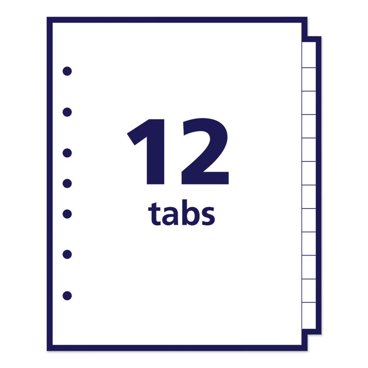 preprinted tab dividers, 12-tab, a to z, 8.5 x 5.5, white, 1 set
