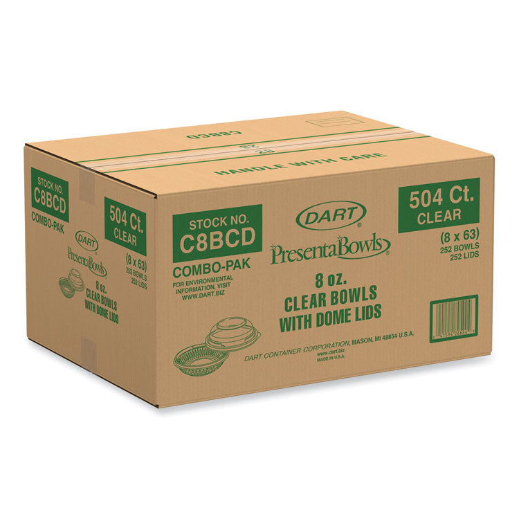 PresentaBowls Bowl/Lid Combo-Paks, 8 oz, Clear, Plastic, 63/Pack, 4 Pack/Carton