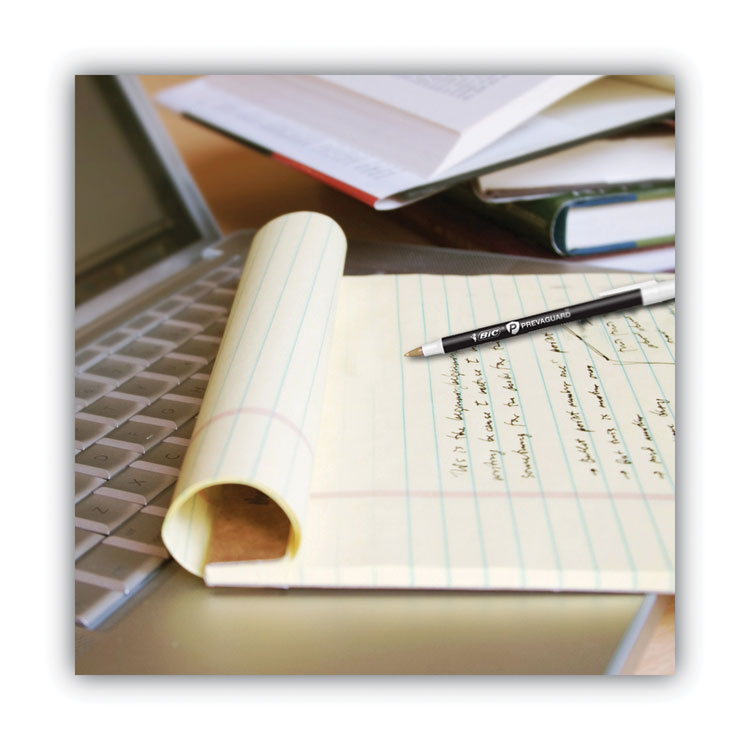 BIC Prevaguard Round Stic ballpoint pen contains an antimicrobial agent incorporated into the plastic that protects the pen itself by suppressing the growth of bacteria, algae, fungus, and mildew. These products protect the pens themselves and do not protect users or others from disease-causing bacteria, viruses, or germs. The antimicrobial agent should last the lifetime of the pen's plastic unless the plastic is destroyed. Along with the antimicrobial agent on the pen, the Round Stic pen is the BIC product you know and love. The BIC Round Stic pen writes 90% longer than Papermate InkJoy ST100, giving you great value for your money. This pen also features a medium 1 mm ballpoint that delivers smooth writing to create vivid, highly visible lines ideal for note-taking, drafting, doodling, and other writing activities. Pen Sub-Brand & Product Family: PrevaGuard Round Stic; Pen Type: Ballpoint Pen; Pen Style: Stick; Pen Tip Type: Conical.