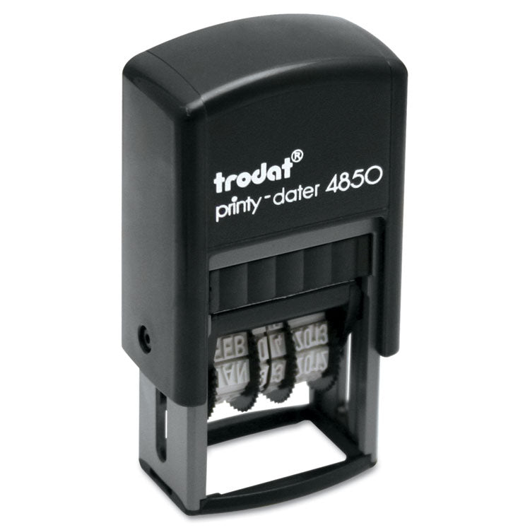 This micro stamp maximizes your options. Compact dater offers the versatility of four interchangeable text plates - or use the date alone. Four bands produce 10 years of dates for long life. Delivers up to 10,000 impressions. Plastic frame. Stamp Type: Message Dater; Message(s): DATE; APPROVED + DATE; COPY + DATE; ENTERED +DATE; SCANNED + DATE; Ink Types: Self-Inking; Impression Width: 1".
