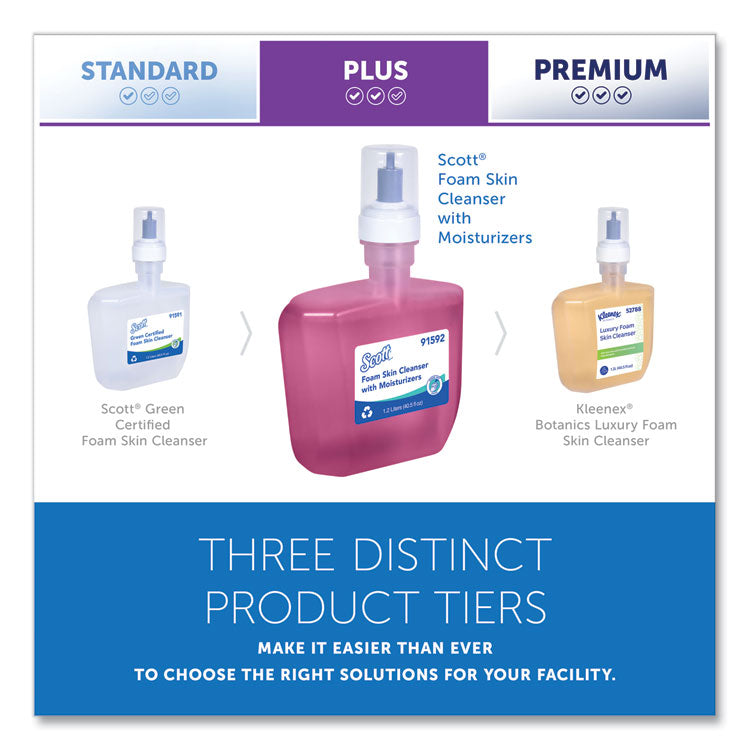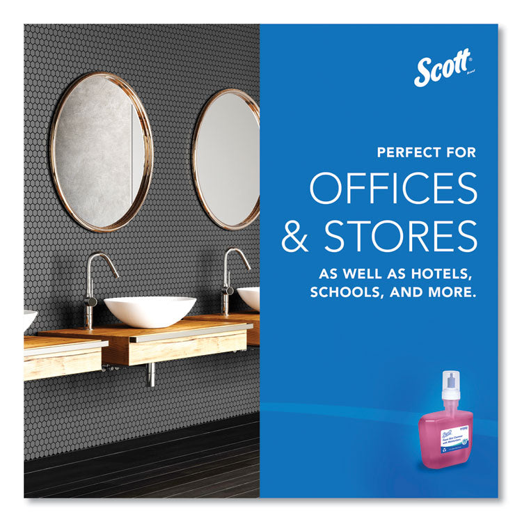 Scott Pro provides state of the art solutions to maximize productivity. Providing the right, hygienic supplies in the restroom is a priority for businesses it shows your staff and visitors that you care enough to provide what they need. By providing Scott Pro Liquid Hand Soap, you're helping stop the spread of germs. This luxurious, moisturizing pink liquid foam soap has a subtle floral scent and comes in a sealed container. The easy-to-load cassette is designed to be compatible with Scott dispensers, and the bottle is recyclable (after the pump is removed). Buy it in bulk so you'll always have a refill and reduce the risk of running out. Providing this reliable hand soap helps give your guests what they need to stay clean and healthy. It's the same Kleenex quality, now Scott branded. Soap Type: Foam; Volume Capacity: 1.2 L; Scent: Citrus Floral; Personal Soaps Application: Hand.