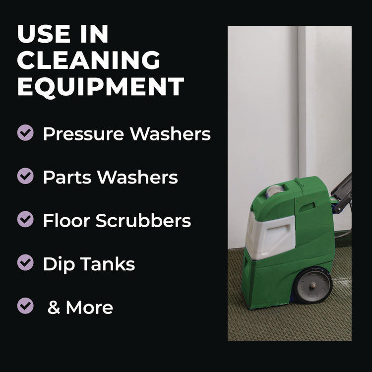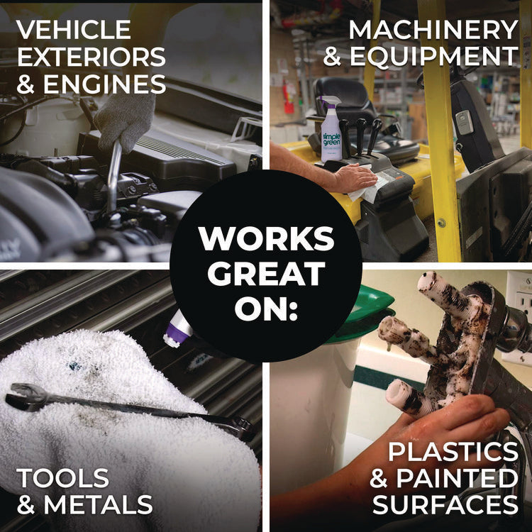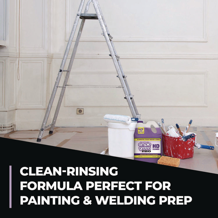 Simple Green Pro HD is a heavy-duty cleaner and degreaser that breaks down tough grease and grime. This powerful formula removes dirt and stains from a wide variety of surfaces including engines, car exteriors, tools, machinery, floors, walls, and more. Formulated with a corrosion inhibitor making it ideal for metals. It's also non-degrading to plastics and clean rinsing. The cost-effective concentrate can be custom diluted for specific cleaning jobs and used in pressure washers, carpet cleaners, floor scrubbers, ultrasonics, dip tanks, and other cleaning equipment. Pro HD provides an effective alternative to solvents and other harsh cleaning chemicals without sacrificing performance. Application: Degreaser/Cleaner; Applicable Material: Ceramic; Laminate; Metal; Plastic; Rubber; Chemical Compound: Triethanolamine; Ethoxylated Alcohol; Propylene Glycol Butyl Ether; Tetrapotassium Pyrophosphate; Potassium Silicate; Dirt Types: Dirt; Dust; Grease; Oil.