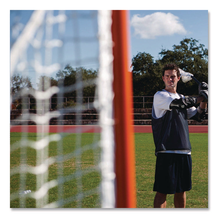 Made with high-quality steel tubing, the Champion Sports Pro High School Lacrosse Goal is an official size lacrosse net designed for high school and recreational programs. Featuring individually welded lacing rails, this lacrosse goal is easy to set up for games or gym classes and convenient to take apart and transport. As well, it includes a high quality 5 mm white net that is sure to hold up to hard shots game after game. Length: 6 ft; Width: 6 ft; Diameter: 1.65" dia; Material(s): Steel; Polyester.