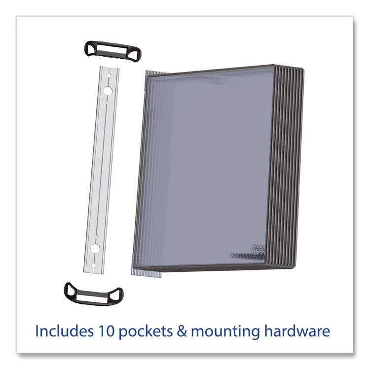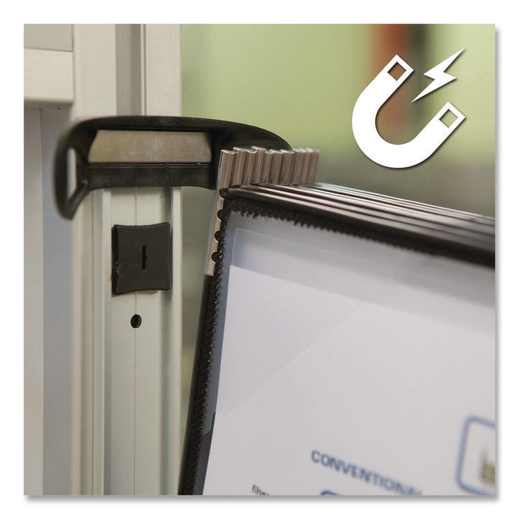 Elevate your workspace organization with the djois®by Tarifold PRO Series Magnetic Wall Reference System. This professional series features universal display pockets compatible with both letter-size and A4 documents. Our sleek and durable system provides easy access to your most important information. It's perfect for offices, workshops, or any environment where efficiency and quick reference are essential. The professional-grade design ensures durability and style, while the wall-mounted setup saves valuable desk space. Stay organized and productive with a reference system designed for professionals who demand both quality and functionality. Rack Style: Wall Mount; Width: 10"; Depth: 15"; Height: 2".
