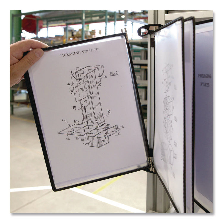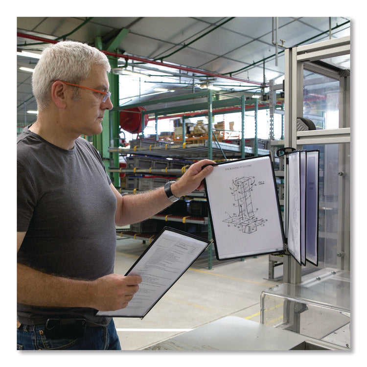 Elevate your workspace organization with the djois by Tarifold Wall Mount Reference System. This Professional PRO Series features five universal display pockets compatible with both letter-size and A4 documents. Our sleek and durable system provides easy access to your most important information. With a five pocket, and 10-sheet capacity, it's perfect for offices, workshops, or any environment where efficiency and quick reference are essential. The professional-grade design ensures durability and style, while the wall-mounted setup saves valuable desk space. Stay organized and productive with a reference system designed for professionals who demand both quality and functionality. Rack Style: Wall Mount; Width: 10"; Depth: 15"; Height: 2".
