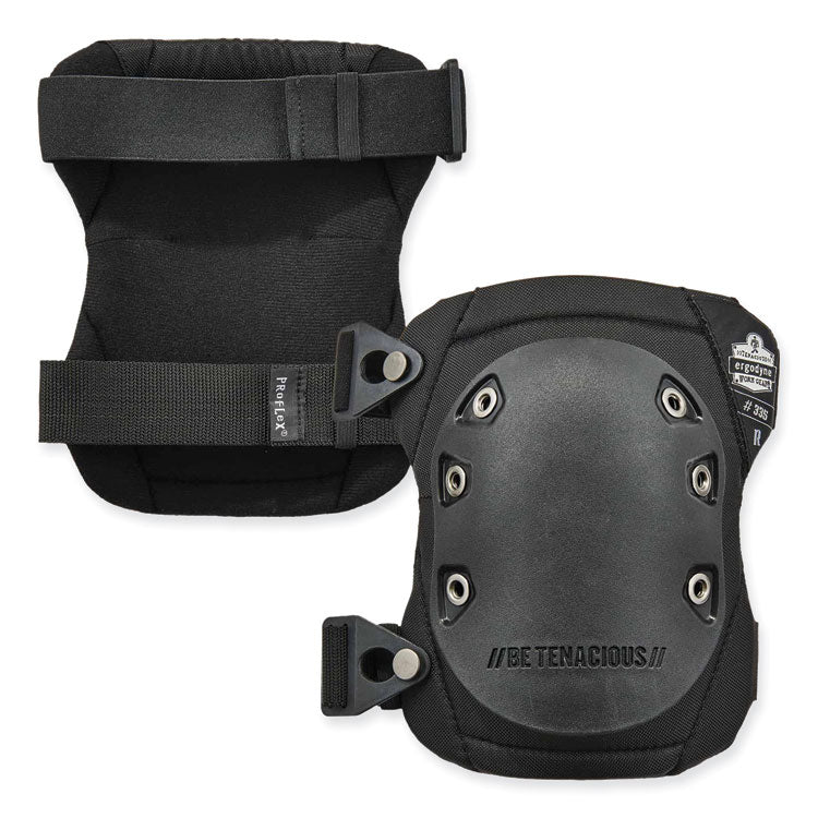 ProFlex 335 Slip-Resistant Rubber Cap Knee Pads, Buckle Closure, One Size Fits Most, Black Cap, Pair