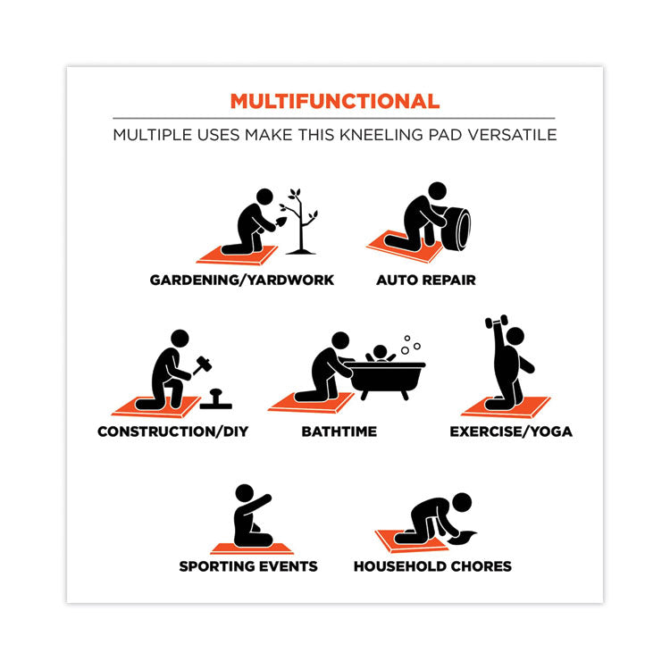 The ProFlex 390 Extra Large Kneeling Pad is built with a beveled safety edge and provides cushioning comfort and knee protection for static kneeling situations on large work surfaces. This kneeling mat is made with thick nitrile rubber (NBR) closed cell foam which will keep its shape over time and won't absorb liquids. The durable closed-cell foam is non-conductive, resistant to petroleum and silicone-free. A built-in convenient handle allows for easy transport and hanging storage making it the perfect knee cushion for work on the jobsite, in the garage, the garden or at home. This extra-large kneeling pad is designed for kneeling on cold surfaces, hard steel, concrete, grating, gravel and wet surfaces. Ideal for mechanics, construction, plumbers, electricians, flooring or anyone looking for comfortable knee support without having to strap on work knee pads. Also great as a garden kneeler or for work around the house. Elbow/Knee Pad Type: Knee; Impact Resistance: Petroleum; Water; Size Group: X-Large; Material(s): NBR Foam.
