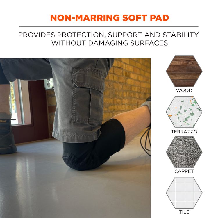 The ProFlex 525 Lightweight Padded Knee Sleeves feature a flexible foam knee pad and a low-profile spandex sleeve design for enhanced flexibility and comfort. Inspired by athletic knee pads, these lightweight knee sleeves are built for movement. The soft strapless nylon spandex fits and flexes comfortably under or over clothes, providing workers with an alternative to more traditional bulky knee pads. For enhanced breathability and comfort, the back of the sleeve features mesh paneling to improve airflow and reduce sweat. The pads are made of an EVA (ethylene-vinyl acetate) foam and abrasion-resistant fabric to prevent scratching or marring on both tough and delicate surfaces. The pads feature a flexible interlocking TriHex pattern, designed to freely move with the knee's natural movements and provide protective support. Elbow/Knee Pad Type: Knee; Size Group: X-Large+; Closure Type: Slip-On; Material(s): Foam; Nylon; Spandex.