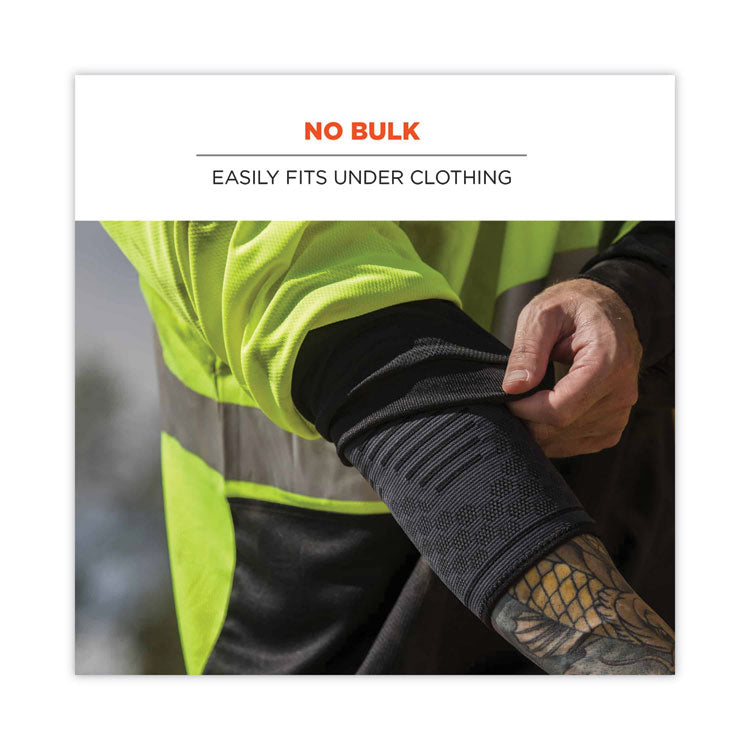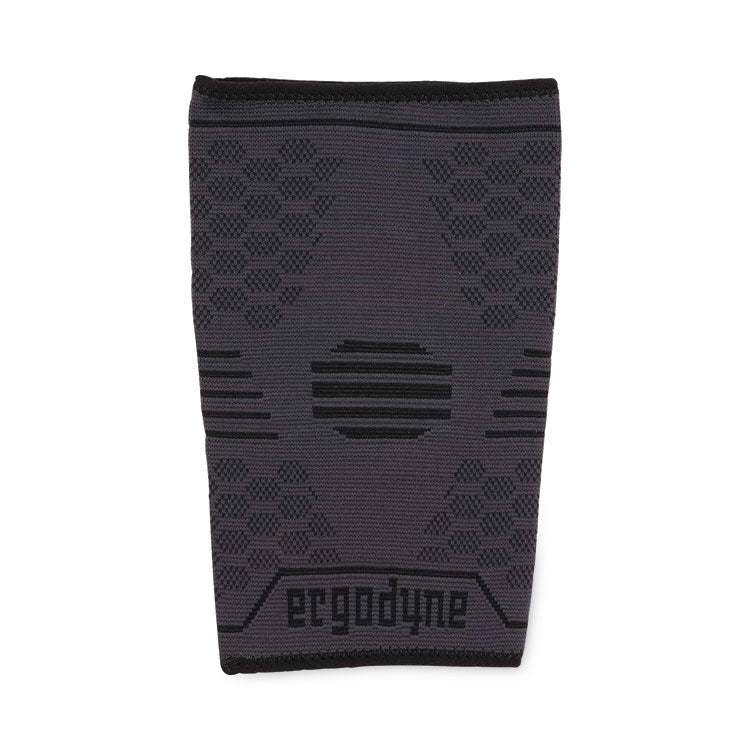 The ProFlex 651 Elbow Compression Sleeve provides breathable comfort and support to relieve elbow pain on and off the worksite. The elbow sleeve compresses the joint to improve blood flow and reduce swelling. It also lends support for an improved sense of joint stability. Increase productivity by reducing pain and accelerating injury recovery with this elbow compression sleeve. Both breathable and supportive, the durable knit compression material also enables full range of motion for all-day comfort. The compression arm sleeve easily slides on over the elbow and the knit pattern provides a snug, anti-slip fit while in use. It is gray with black accents for a low-profile wear. To determine ideal size, measure the circumference four inches above your elbow joint. If you are between sizes, go down for increased compression and up for reduced compression. Elbow/Knee Pad Type: Elbow; Size Group: Small; Material(s): Nylon; Spandex; Color(s): Gray/Black.