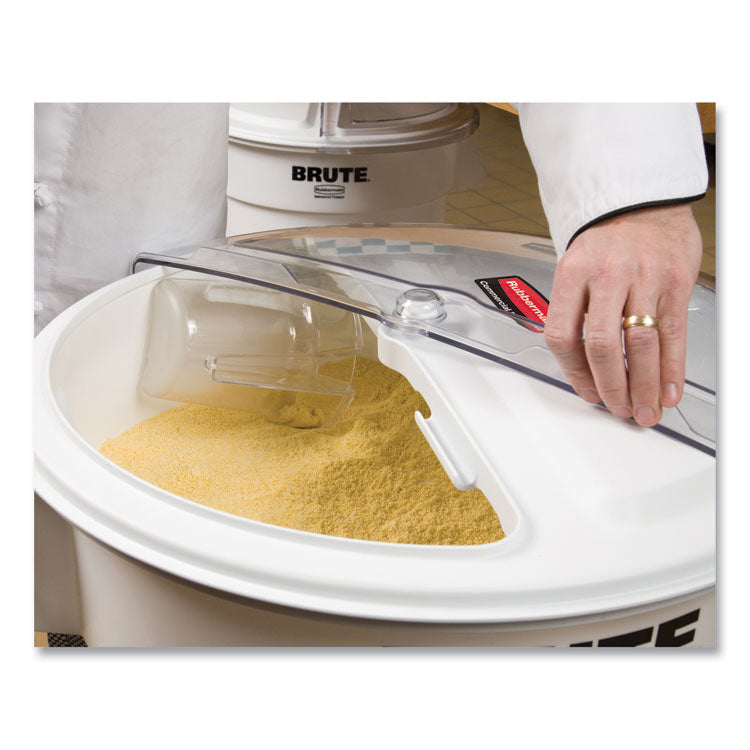 Convert a standard Brute container into a high-capacity ingredient bin with the ProSave conversion kit. Rotating, slide-closure design provides convenient one-handed access to contents. Included scoop with dedicated internal scoop storage system improves efficiency while helping you comply with food safety regulations. Clear window enables at-a-glance stock monitoring. Food Container Type: Ingredient Bin/Pail Lid; Material(s): Resin; Material Type: Plastic; Interior Volume Capacity: 32 gal.