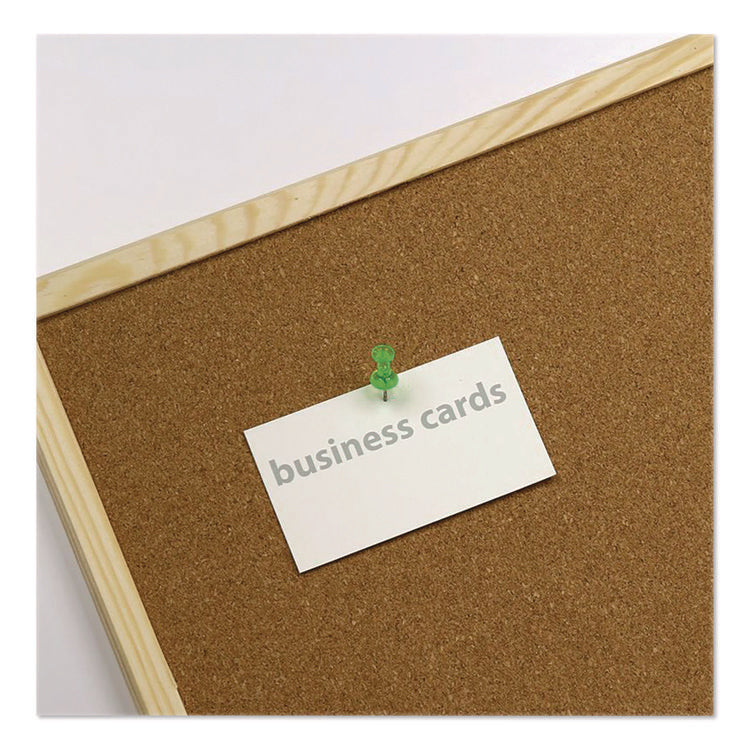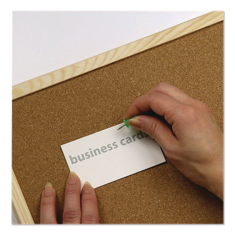 Attach papers securely to cubicle walls and bulletin boards with these plastic push pins. Each pin features a 0.5" steel point and a transparent plastic handle with a wide top, reducing the required effort to push them in and helping to reduce pressure on your thumb. Head Material: Plastic; Pin Material: Steel; Color(s): Assorted; Shank Length: 0.5".