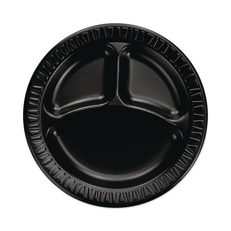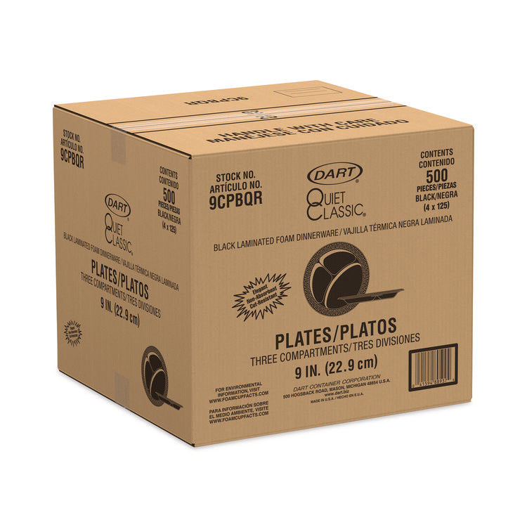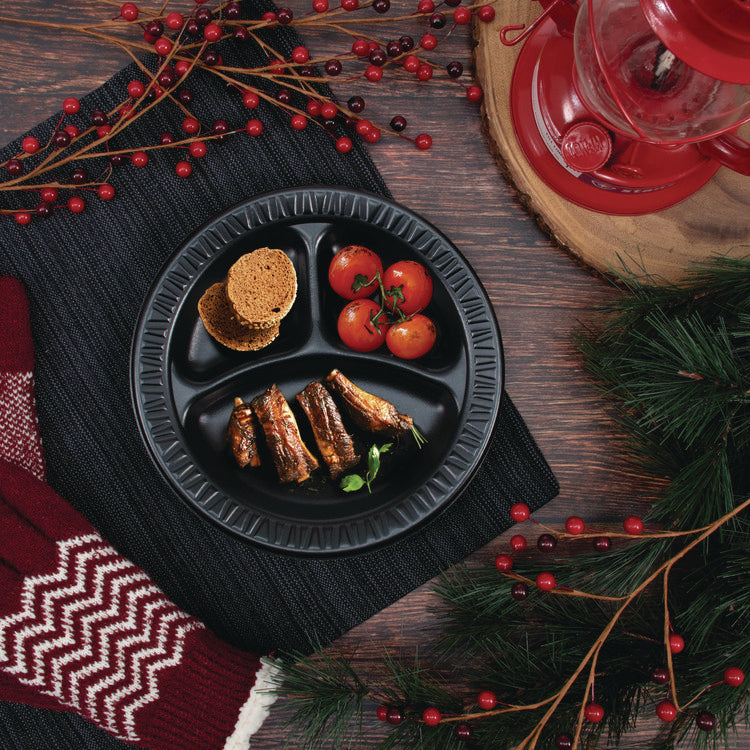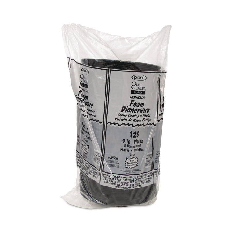 Need dinnerware that holds up to saucy, substantial portions? Look no further! Serve epic meals on this foam dinnerware. Sturdy design is smooth, cut-resistant and soak-proof thanks to the laminated surface. Chow down with confidence since this dinnerware resists bending or buckling under hefty feasts. Keep hands at a comfortable temperature, this dinnerware is insulated. Whether you're dishing up the best BBQ in town, feeding a crowd from a food truck, or catering an event, this dinnerware will meet your needs and look great doing it. Dinnerware Type: 3-Compartment Plate; Material Type: Foam; Material(s): Extruded Polystyrene; Interior Volume Capacity: 5 oz; (2) 1.6 oz.