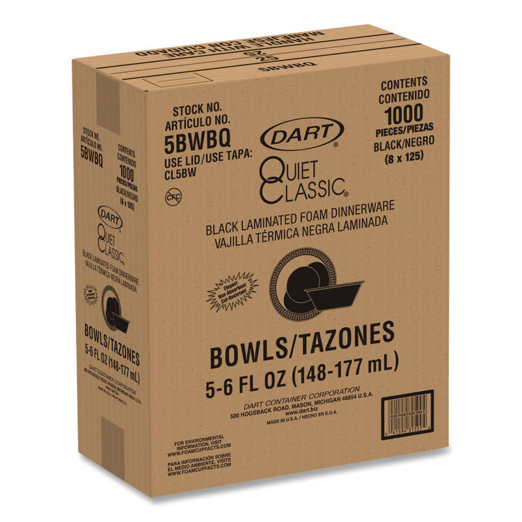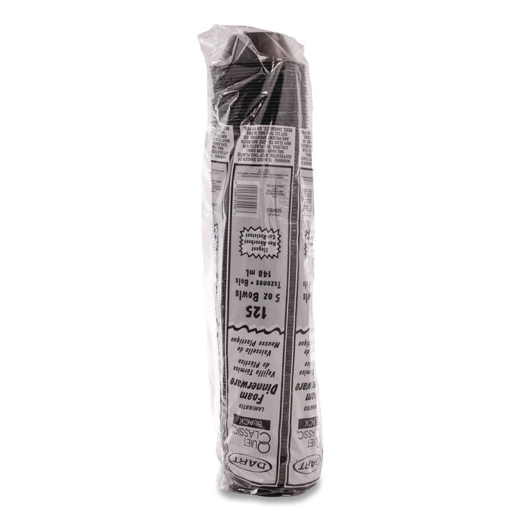 Quiet Classic Laminated Foam Dinnerware, Bowl, 5 oz, Black, 125/Sleeve, 8 Sleeves/Carton